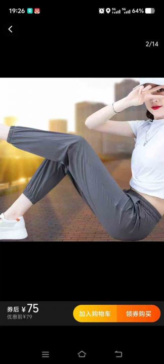 服裝/T恤 ☆女裝夏季束腳冰絲運動休閑褲,803件,S-2XL,面料成份90%錦綸10%氨綸,質...